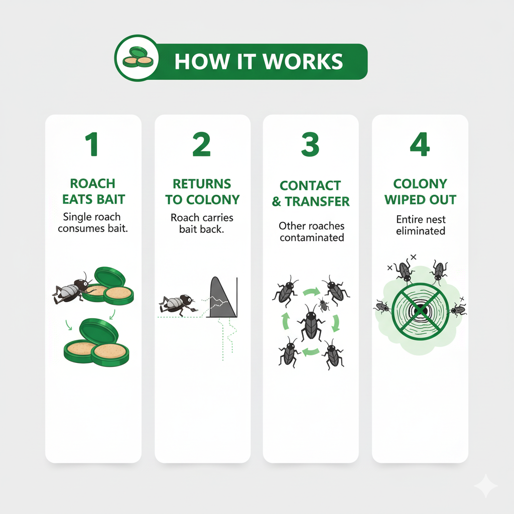- Proven Results: Lab-tested bait kills 99% of roaches in 24 hours.